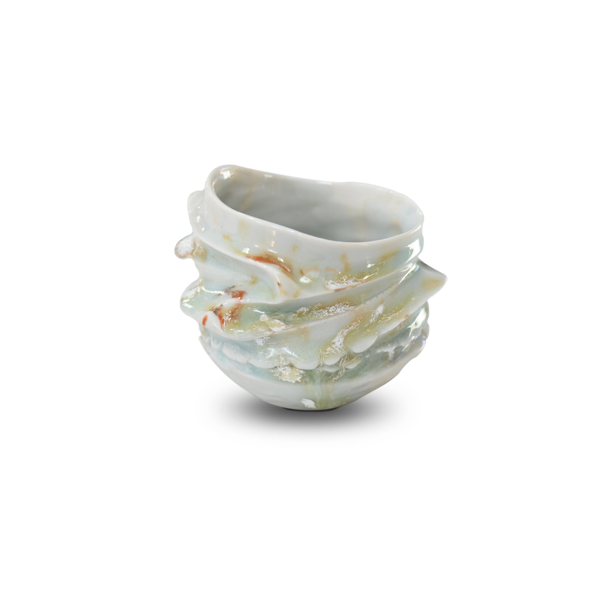 Swirling with heat-kissed motion, this guinomi embodies the essence of flame. Asato Ikeda’s signature hand-formed ridges catch and guide the vivid glaze, creating a sculptural surface that changes with every angle.