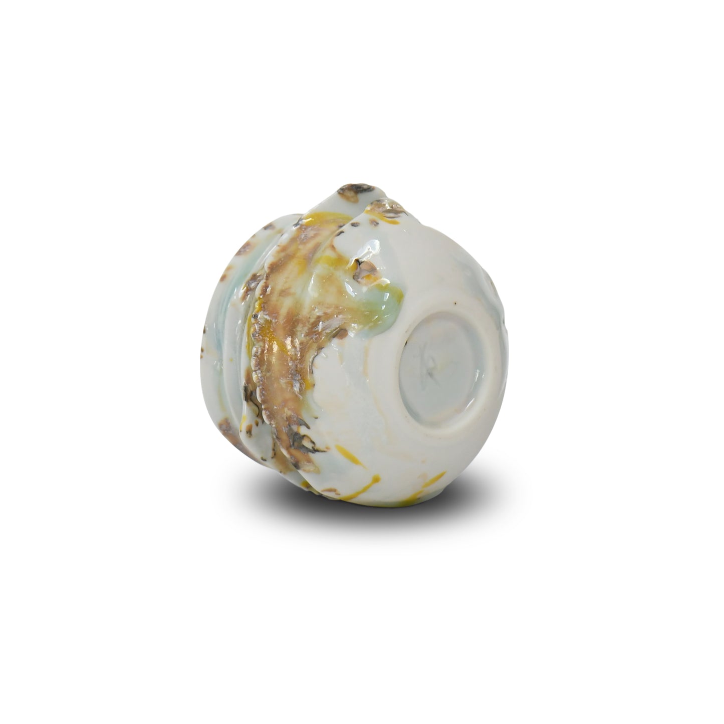 A quiet swirl of flame and ash. This piece from Asato Ikeda’s Ensai (炎彩) series features soft gradients of muted orange, charcoal, and natural clay tones. The ridged form is tactile and expressive — created through his signature “drip” technique, then transformed in the kiln into something elemental. Ideal for both warm and chilled sake.