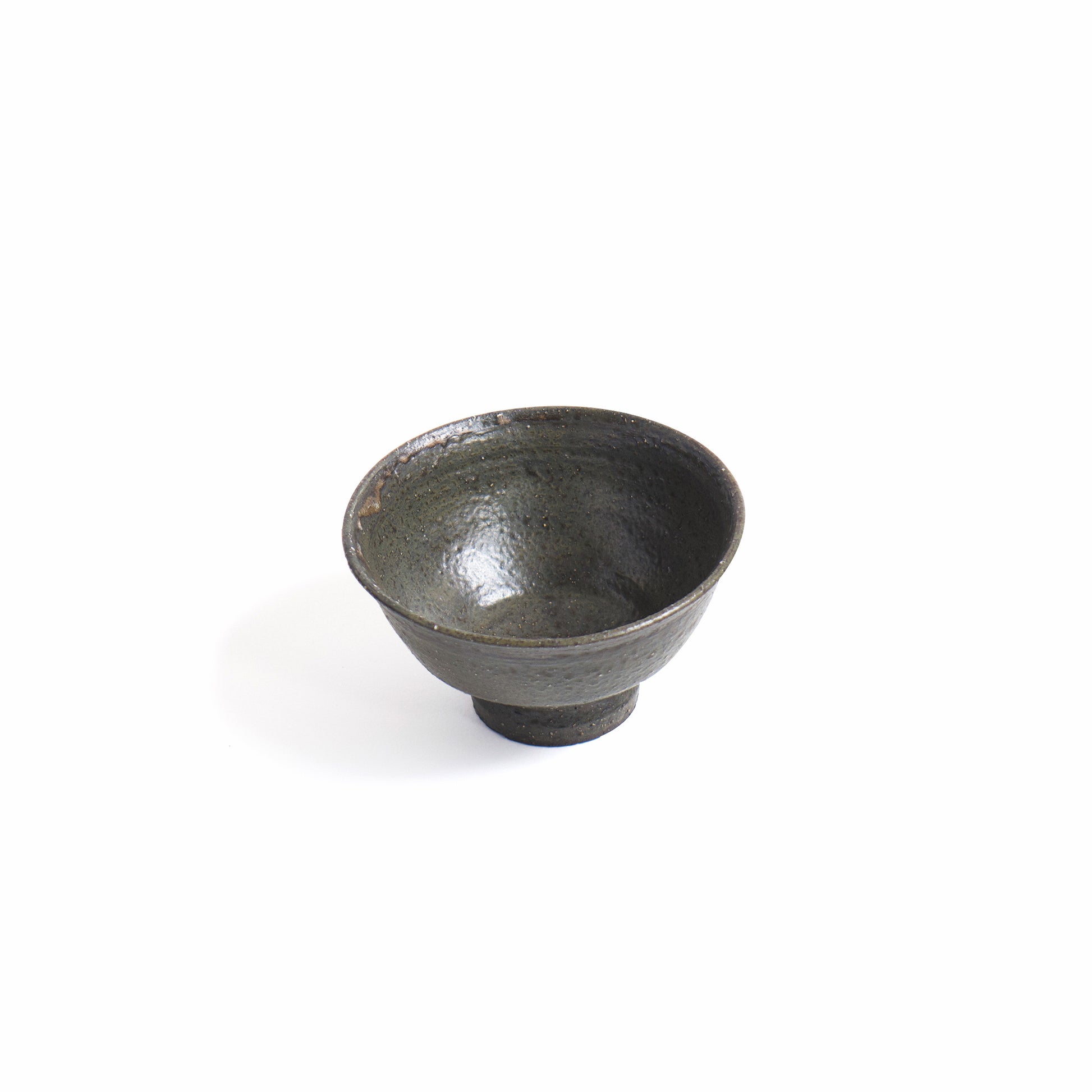 Handmade by Mashiko-based artisan Takeshi Honda, this wheel-thrown rice bowl features a bold charcoal glaze with an earthy texture. Its deep tone and minimal form evoke timeless Japanese craftsmanship. Perfect for rice, fruits, or small meals, it blends tradition with everyday function. It is a versatile, elegant piece that complements any kitchen and adds quiet beauty to daily life.